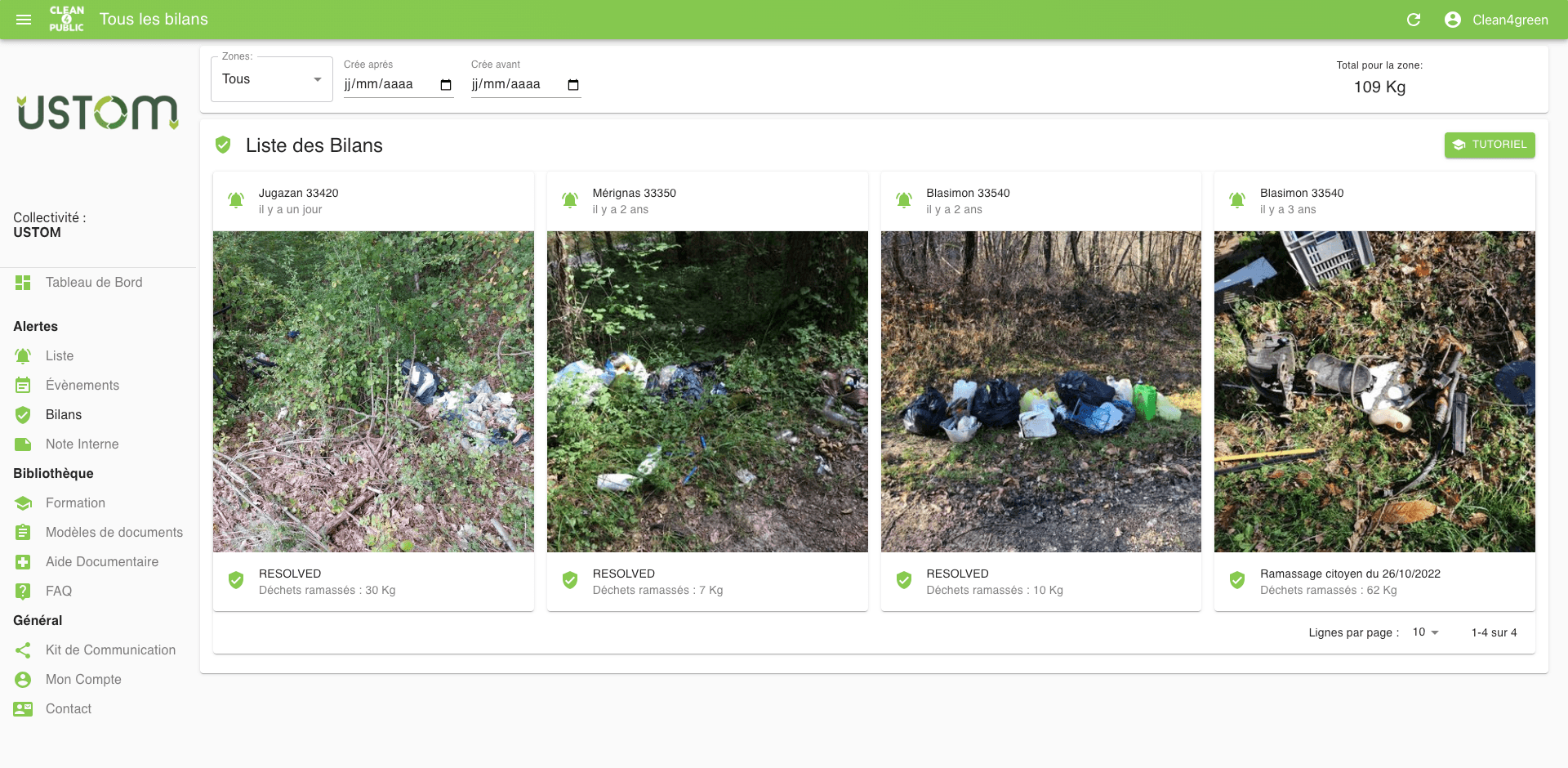 Nous nous appuyons sur la base de données publique des alertes de Clean4green pour vous signaler en temps réels la géolocalisation, les photos et les commentaires sur chacune des alertes.
